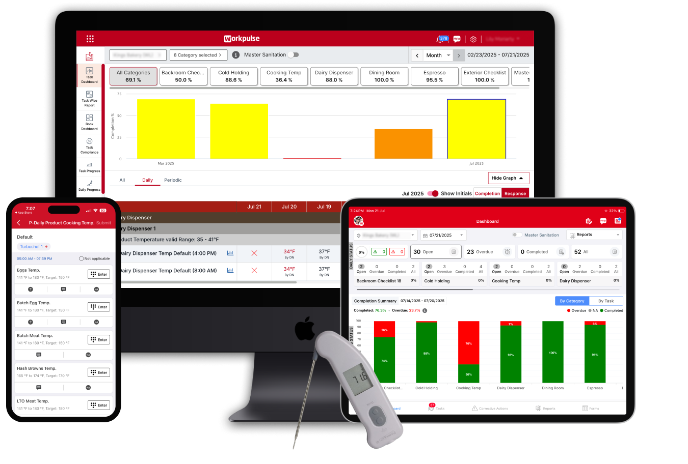 With Workpulse Book, compliance isn’t reactive – it’s proactive. You’ll never have to worry about missed temperature checks or expired cleaning schedules again.