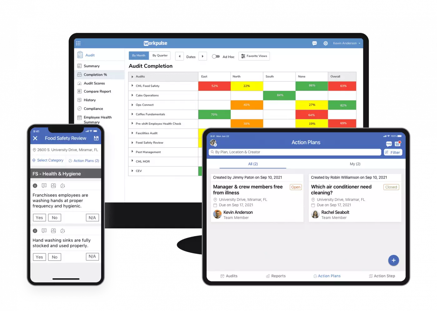 Tired of being the last to know about audit issues? The Workpulse Audit Dashboard (enhanced in v6.1.0!) gives you immediate, real-time oversight of audit performance and action plans across all your QSR locations. No more waiting for reports or sifting through paperwork – see exactly where you stand, instantly.